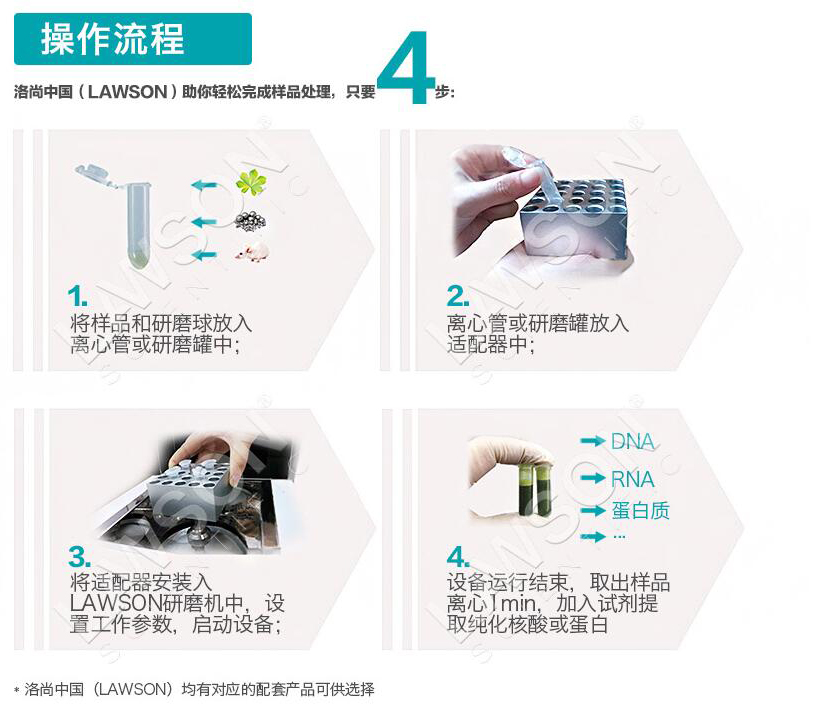 5.通常用于DNA和RNA分離的少量樣品可在一次性離心管中制備。可采用聚四氟乙烯材料制成的適配器,容納5或10個一次性樣品試管,進行細胞破碎。在多樣品組織研磨機中細胞組織在極短的時間內(nèi)得到快速而有效的破碎,因而無需額外的低溫制冷。
